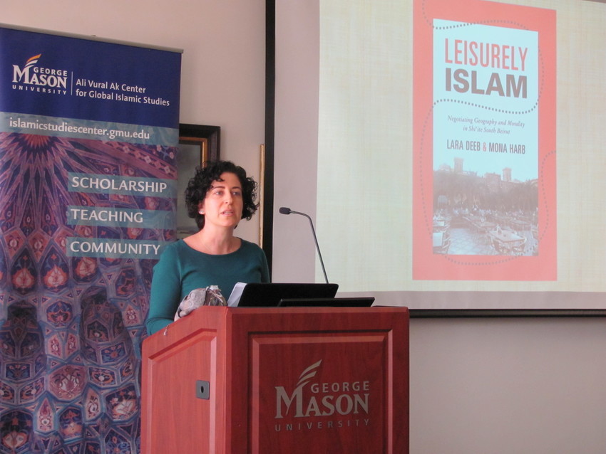 Deeb’s lecture was based on research done in the southern Beirut suburb of Dahiya over the past several years for her book, co-authored with Mona Harb, Leisurely Islam: Negotiating Geography and Morality in Shi’ite South Beirut. Her research centered on how devout teenagers and college students living in this district, known as a religiously conservative area, view their faith in relation to their personal choices and recreational activities. Balancing strong religious convictions with a flexible social life can sometimes present practical challenges, as Deeb pointed out. Far from being a monolith as is often stereotyped, the youth of Dahiya held diverse opinions on numerous issues affecting their personal lives including the etiquette of café-going, consumption of alcohol, listening to music, using cosmetics, and entering temporary marriages. Deeb highlighted instances where differences in opinion between these young men and women were more prevalent, pointing to some of the challenges that both face due to the pressure of societal norms and gendered double standards.